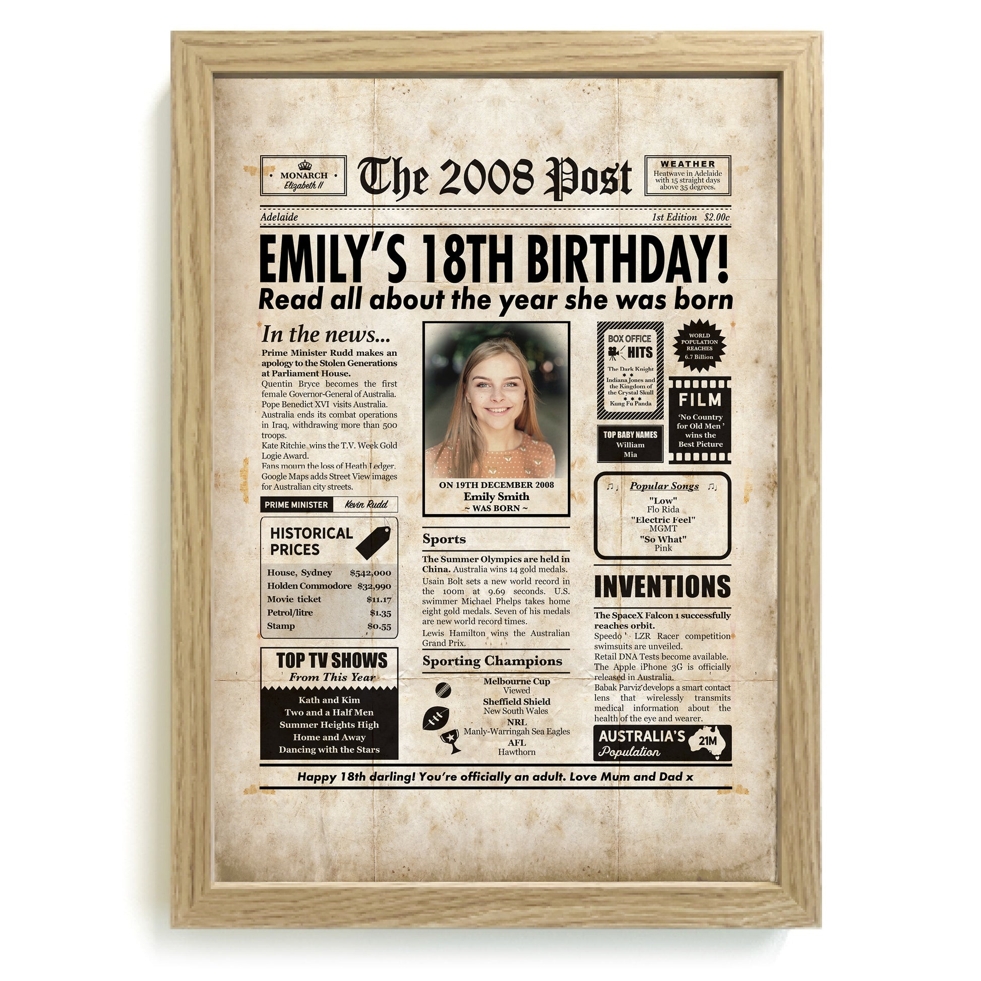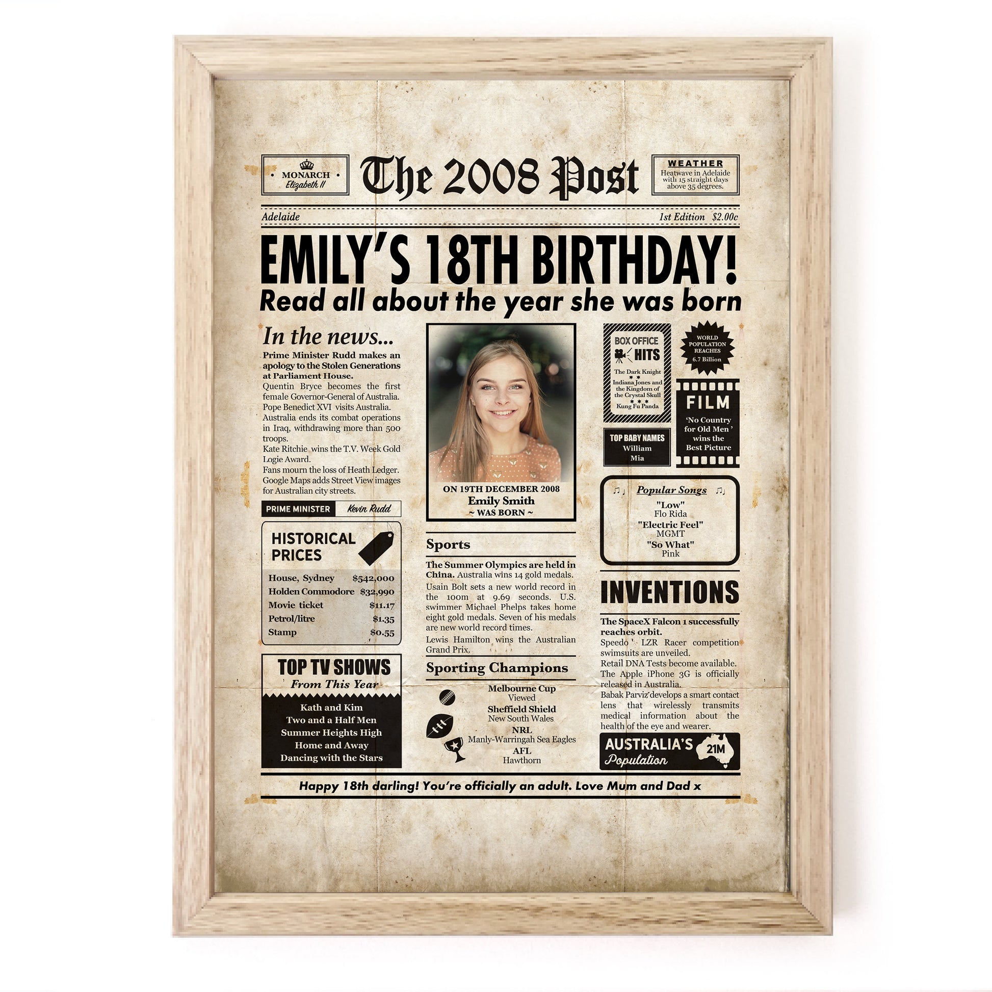 From memorable movies, music hits and key Australian events, our personalised 2008 newspaper has it all! Take a walk down memory lane and relive the year your loved one was born.