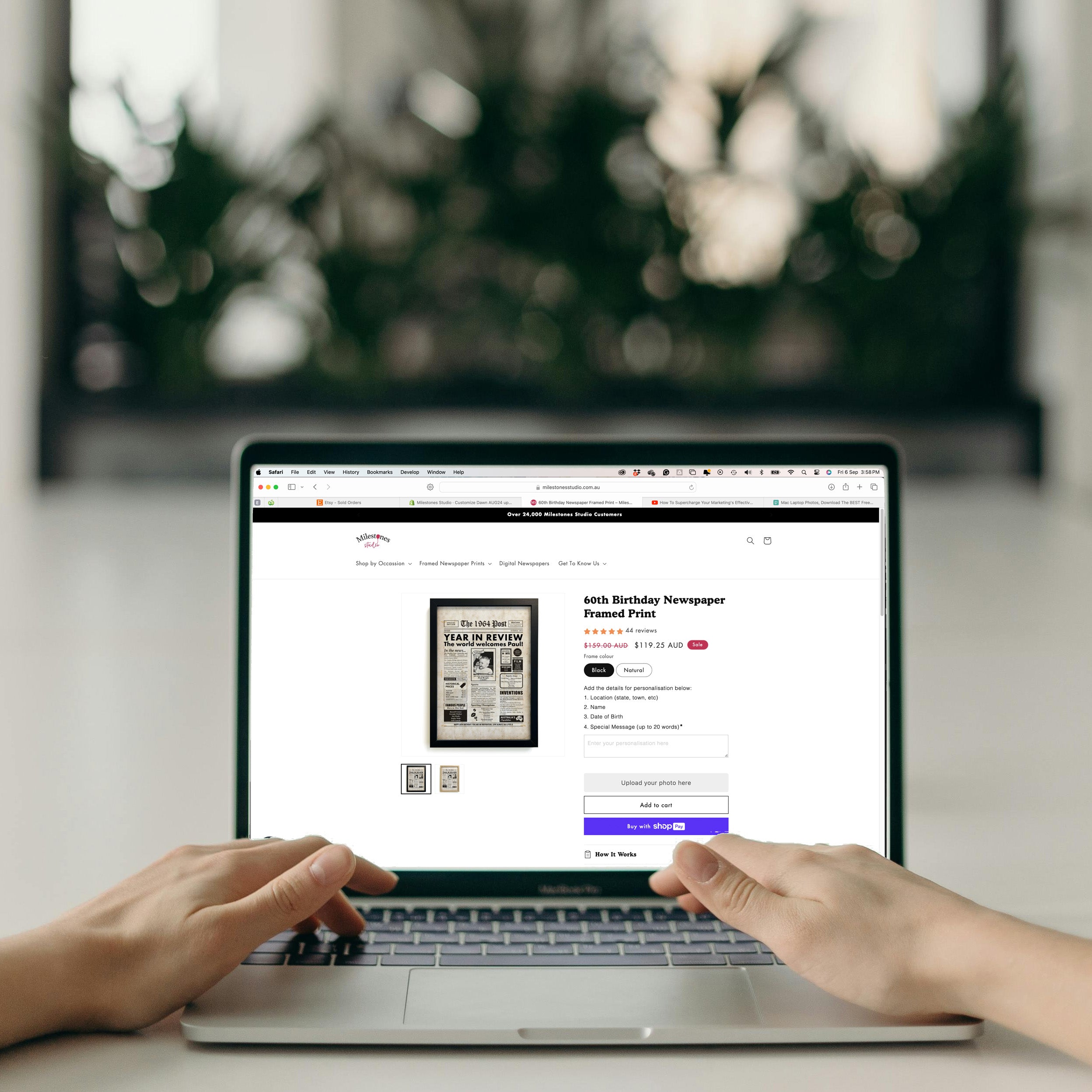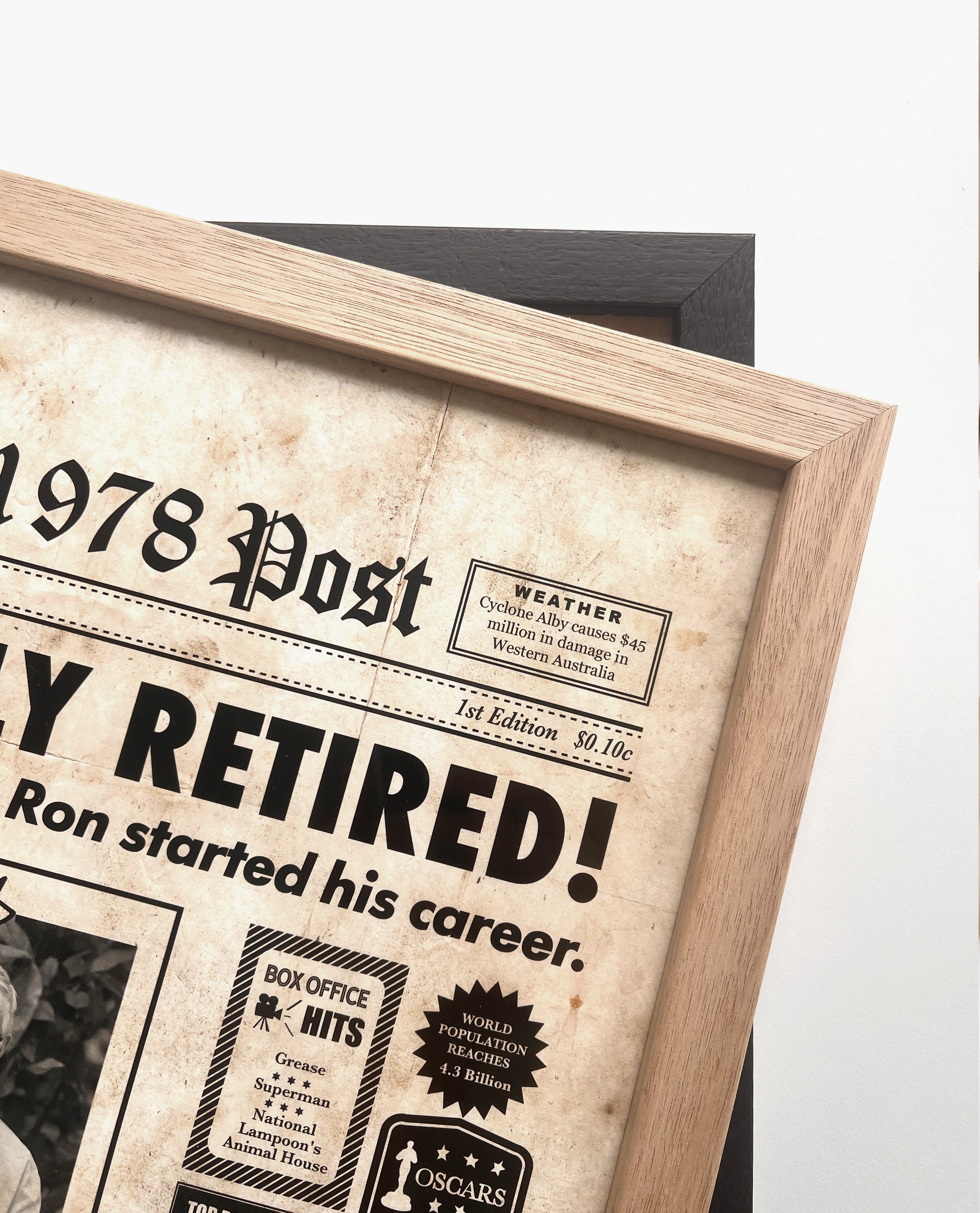 I am absolutely thrilled with the way my product turned out. It’s for my Brorhers 50th and looks amazing. It’s beautifully framed and genuine care was taken with packaging as well. Natalka went through all the minor adjustments I needed and very quickly too. Postage was also fast. I highly recommend going through Milestones Studio, if this is what you’re looking for. Thankyou Natalka.