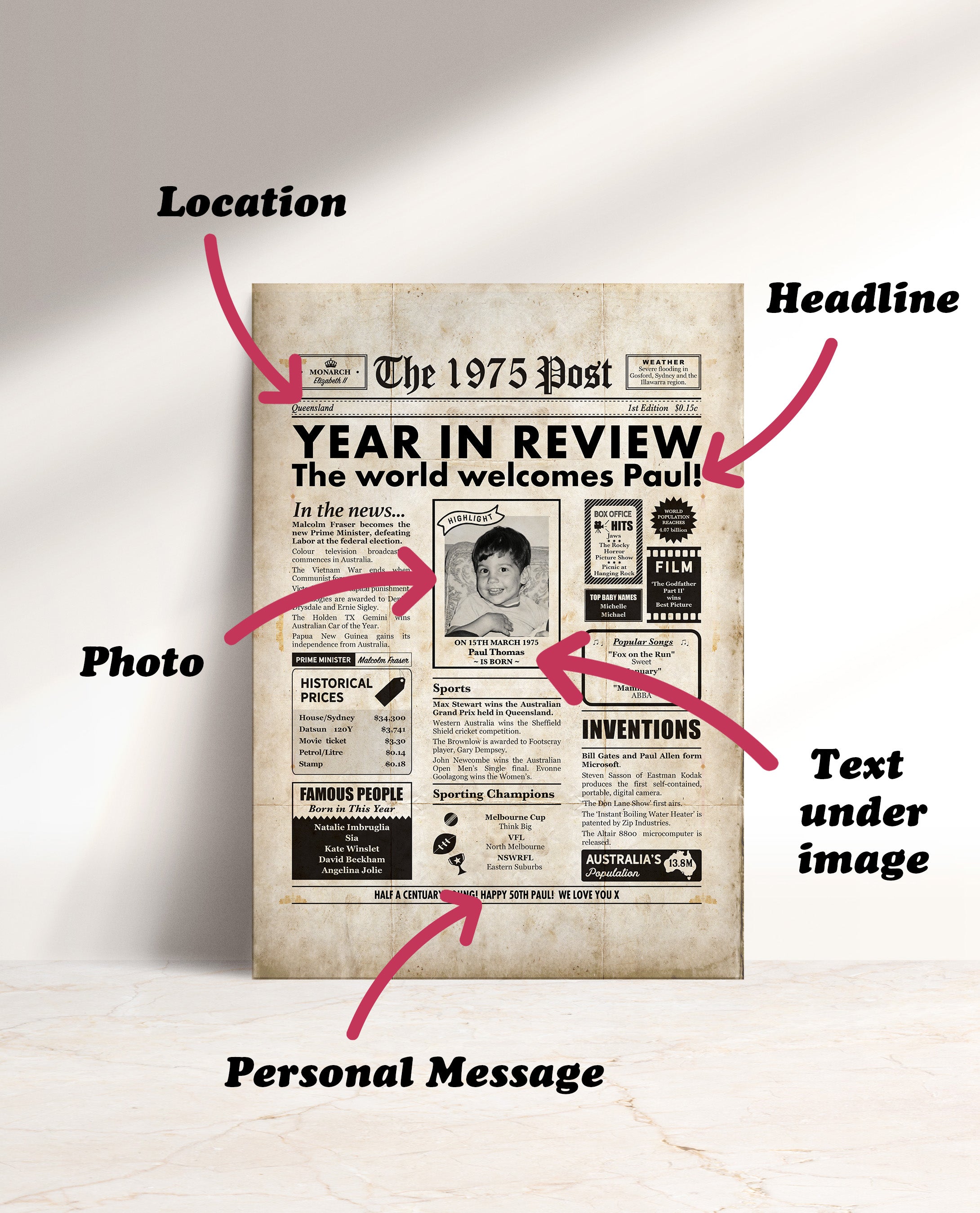 From memorable movies, music hits and key Australian events, our personalised 2007 newspaper has it all! Take a walk down memory lane and relive the year your loved one was born.