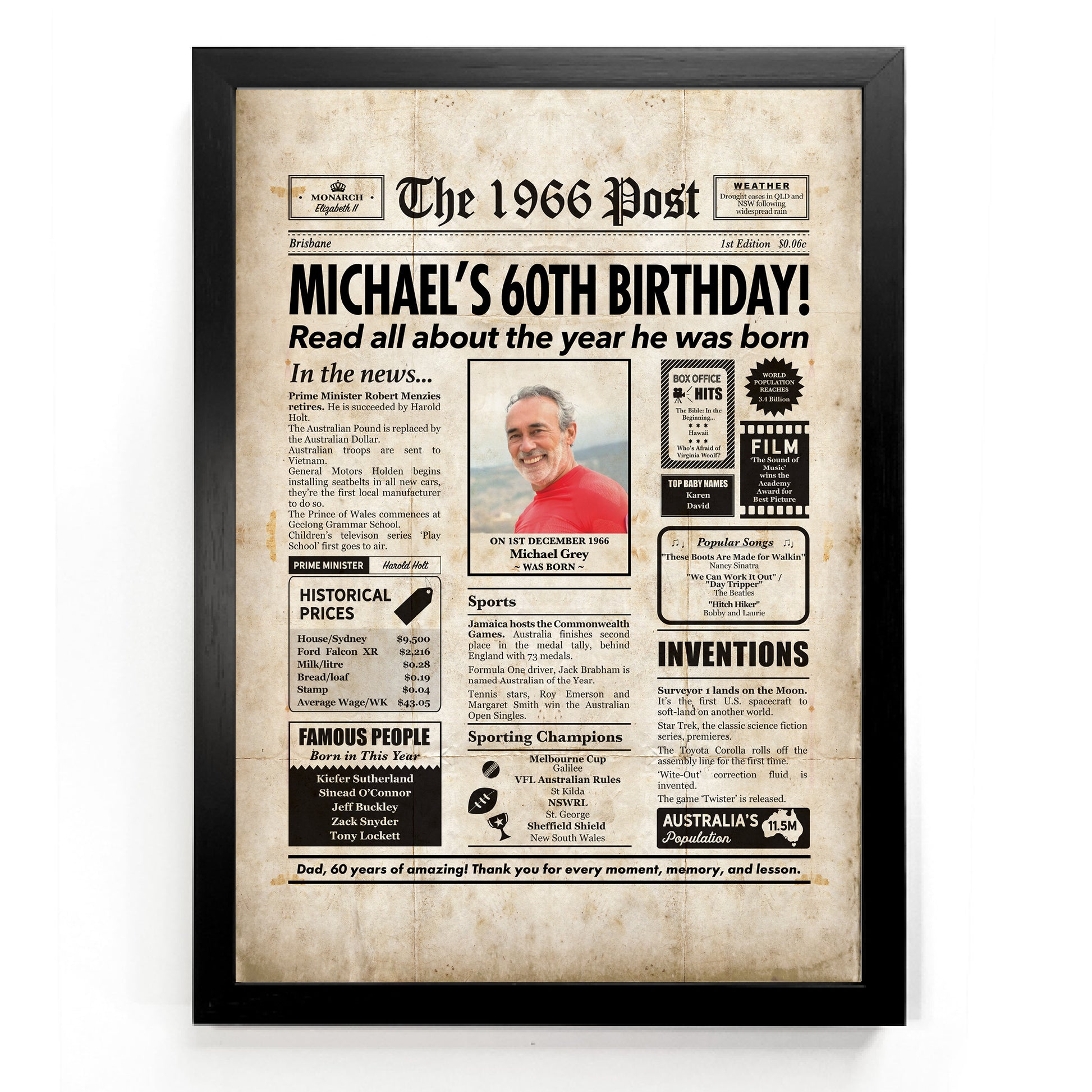 This framed newspaper print is a heartfelt gift that speaks volumes. Celebrate their 60 years of life, love, and laughter with a touch of history and a whole lot of Aussie pride.