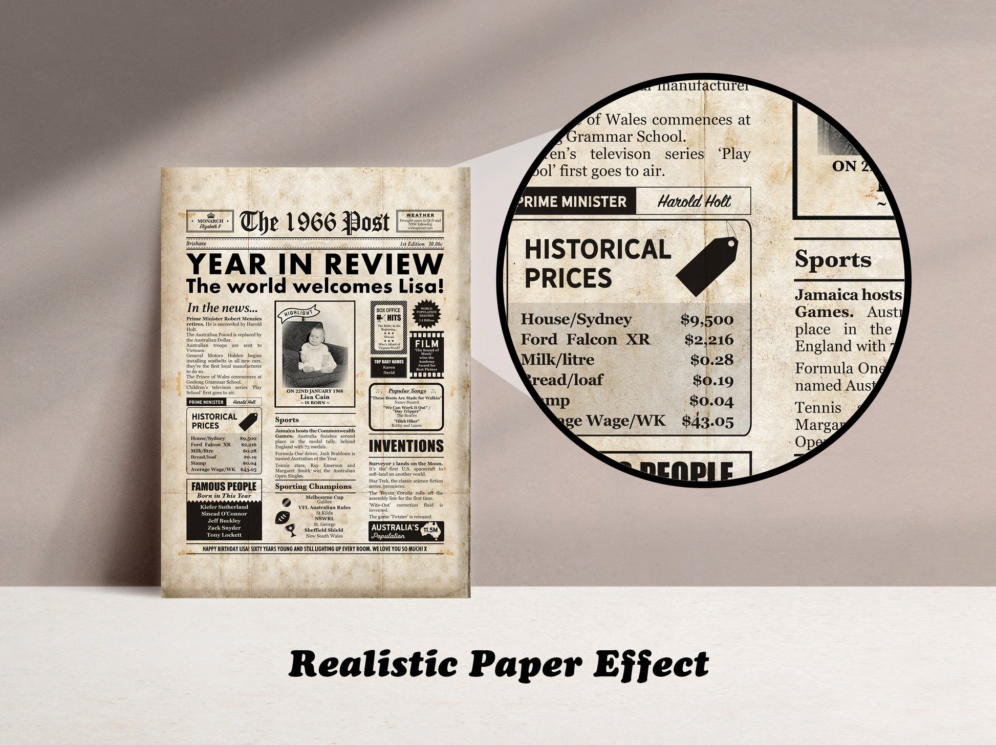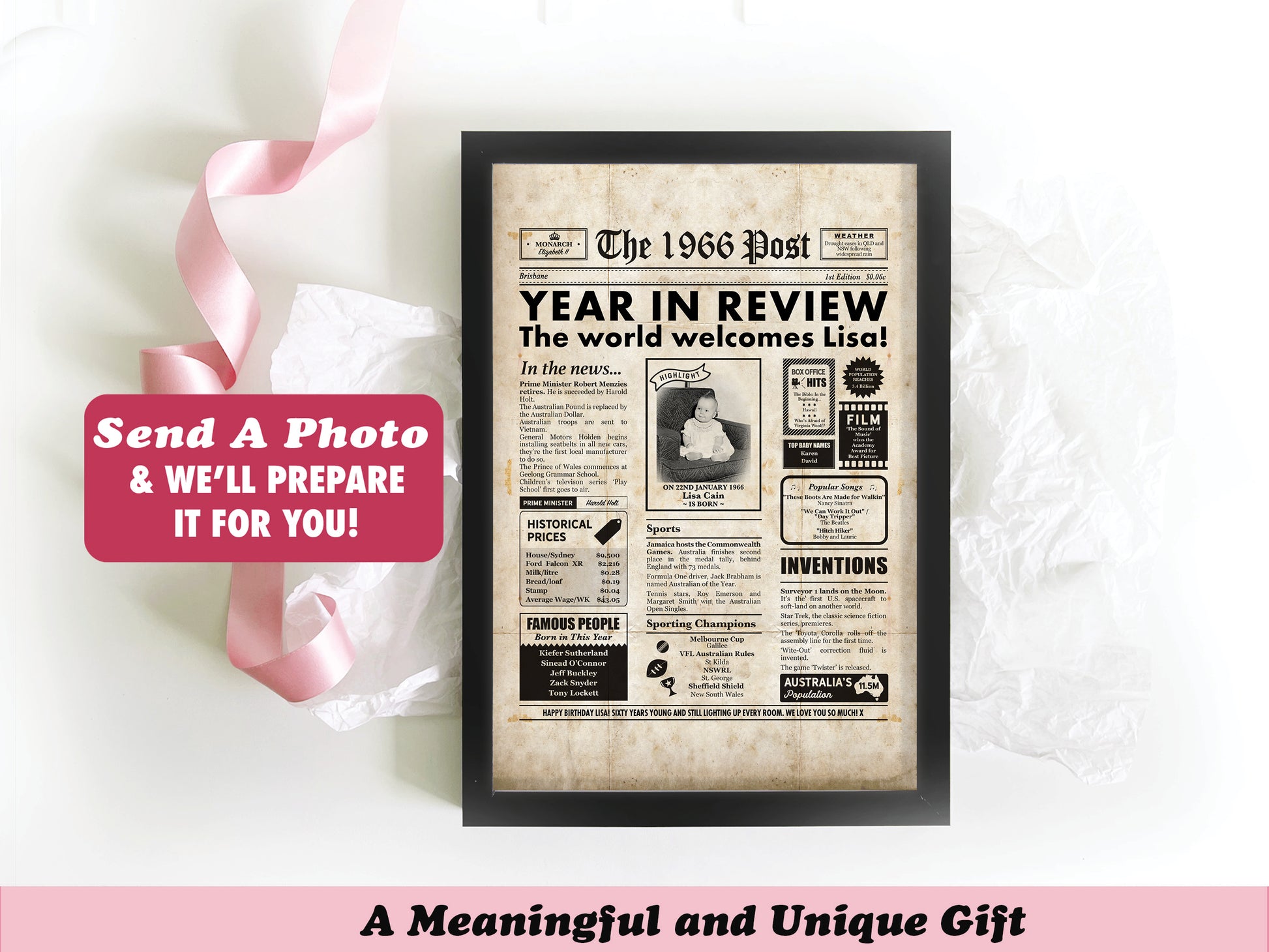 Looking for a unique and memorable 60th birthday gift? Our digital 1966 Australian newspaper poster is the perfect choice.