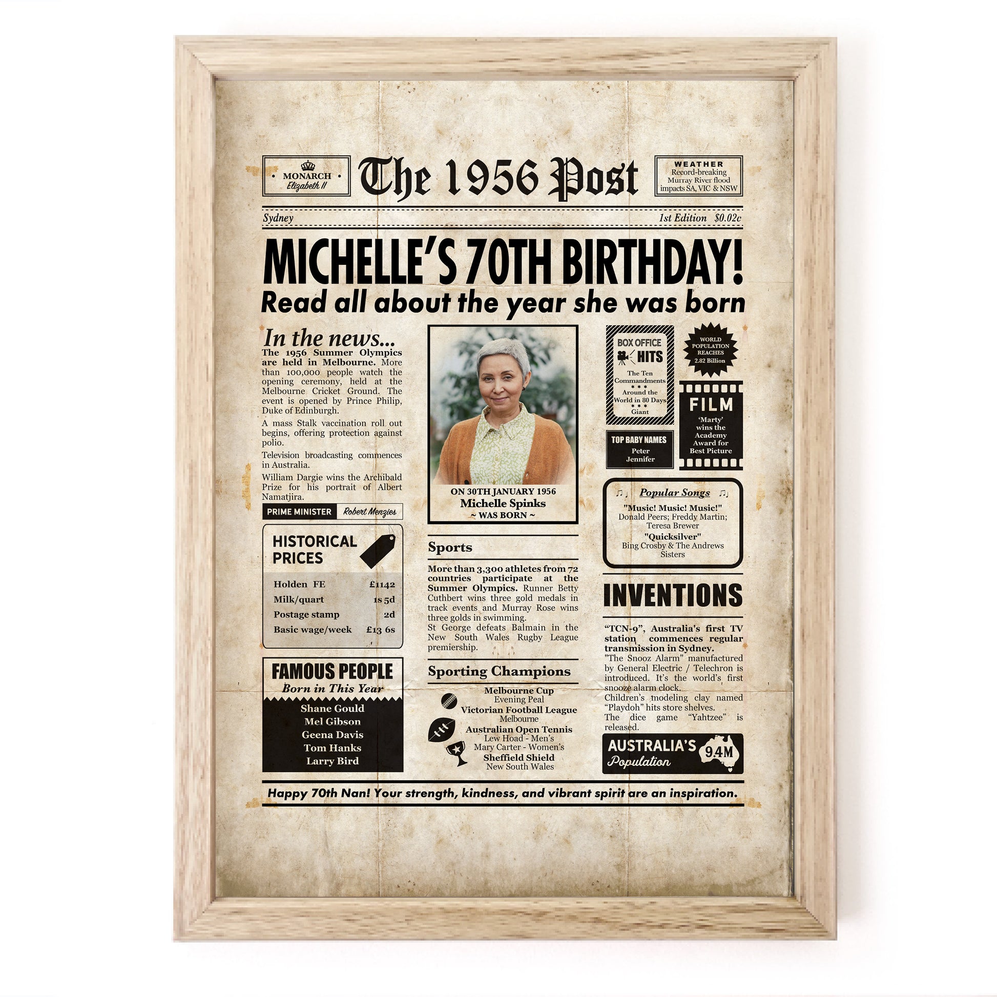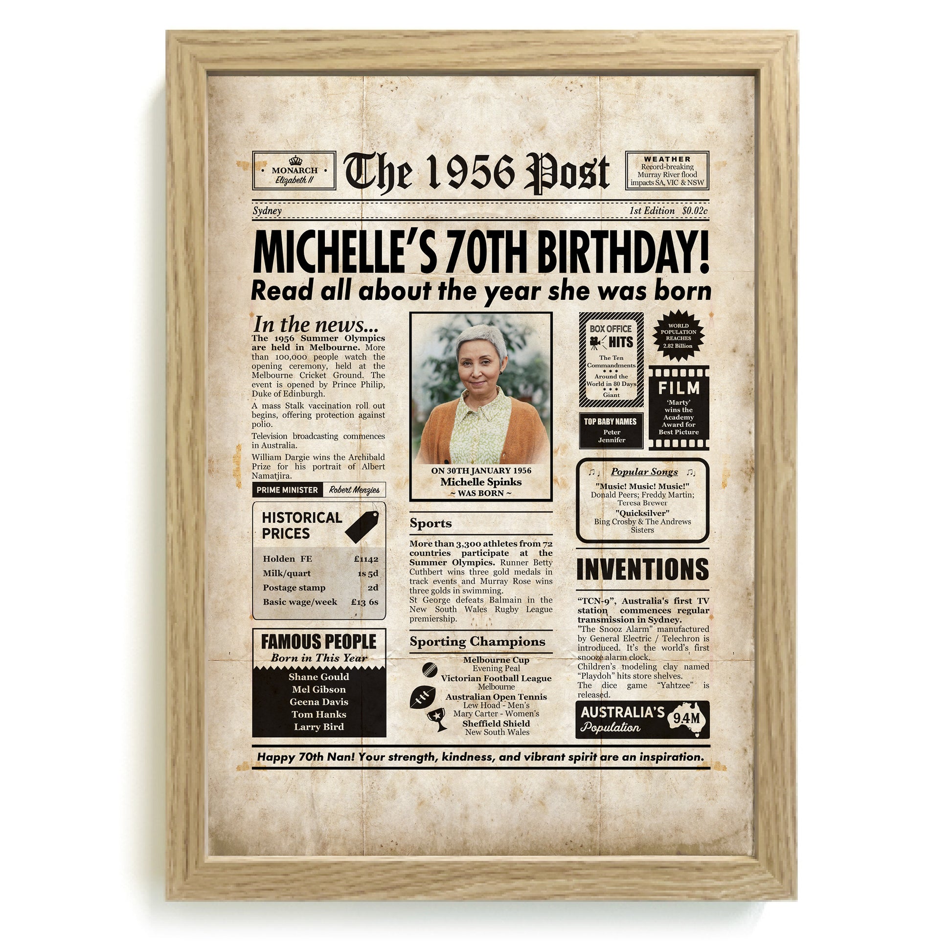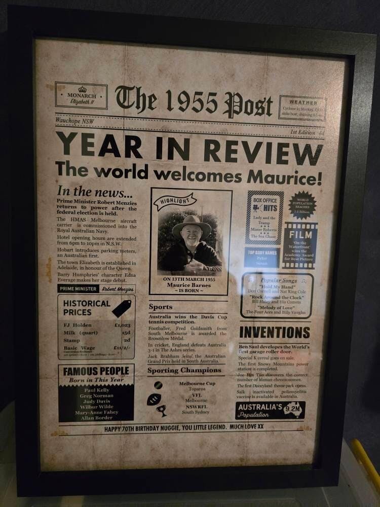70th Birthday Colour Newspaper Framed Print