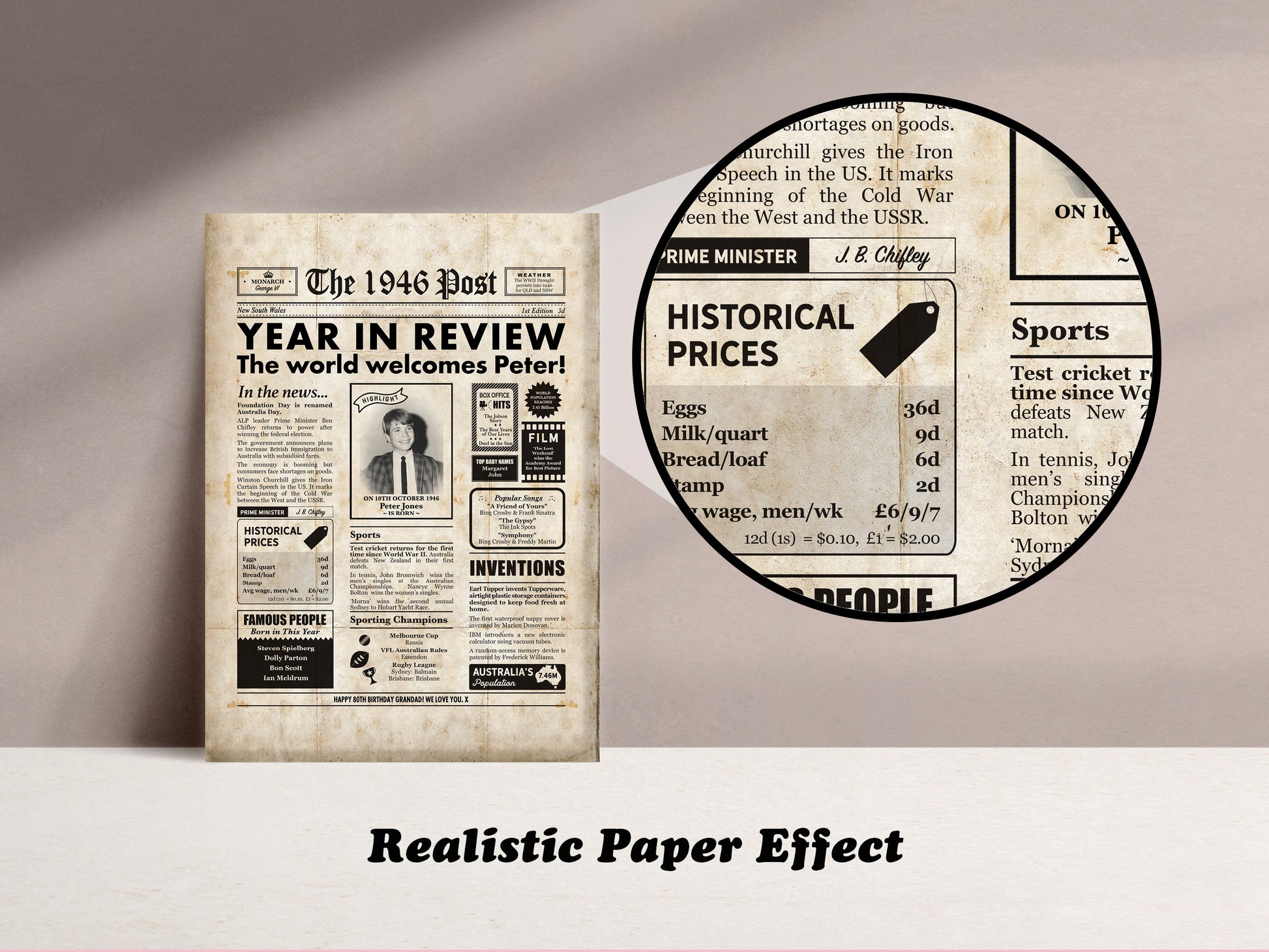 Looking for an meaningful 80th birthday gift for someone who has everything? Then our digital 1946 Australian newspaper poster is just for you!